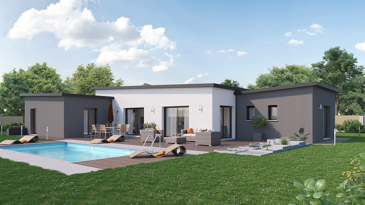 Maison de plain-pied de 124 m² avec 3 chambres.